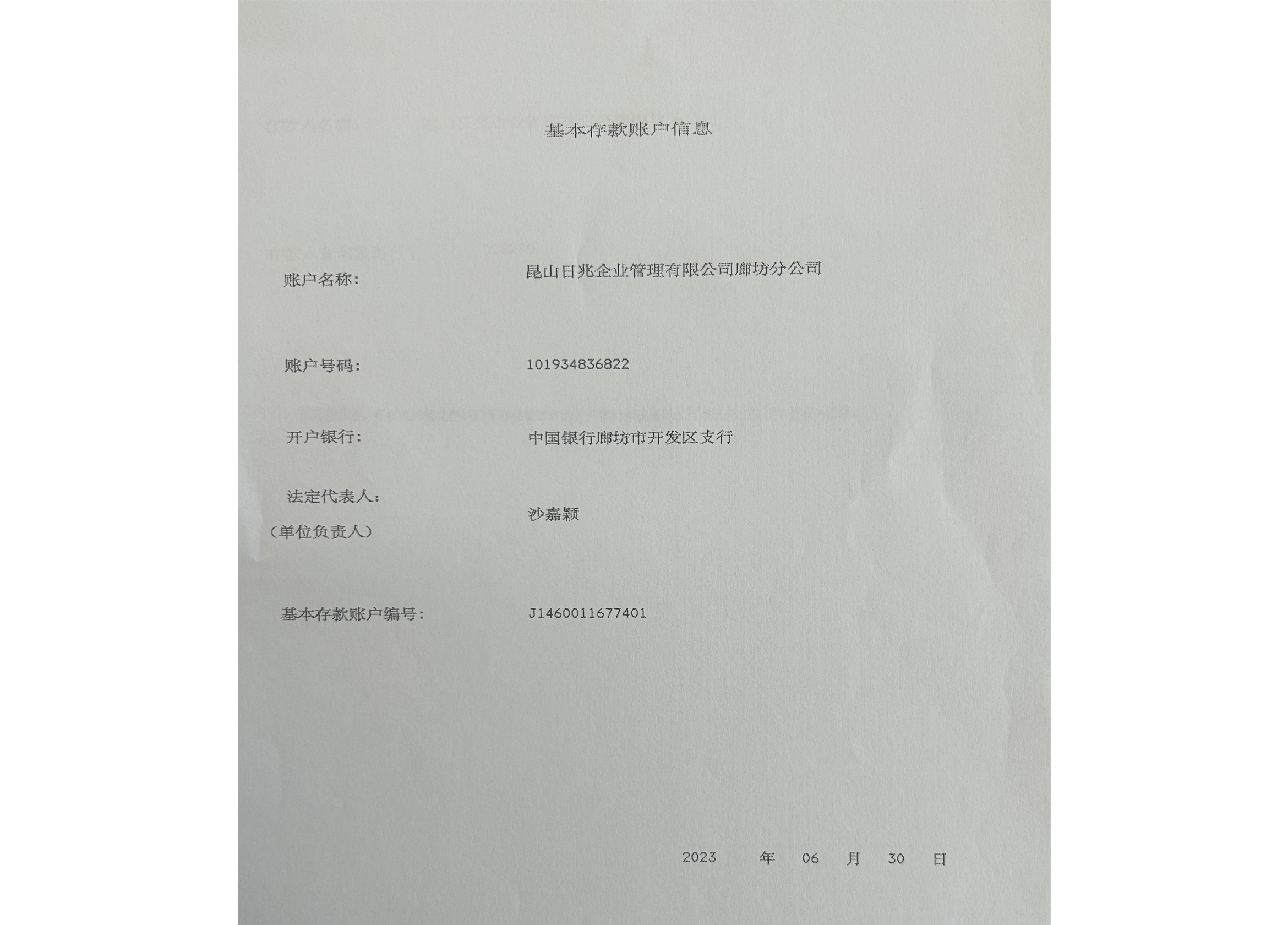 基本存款账户信息