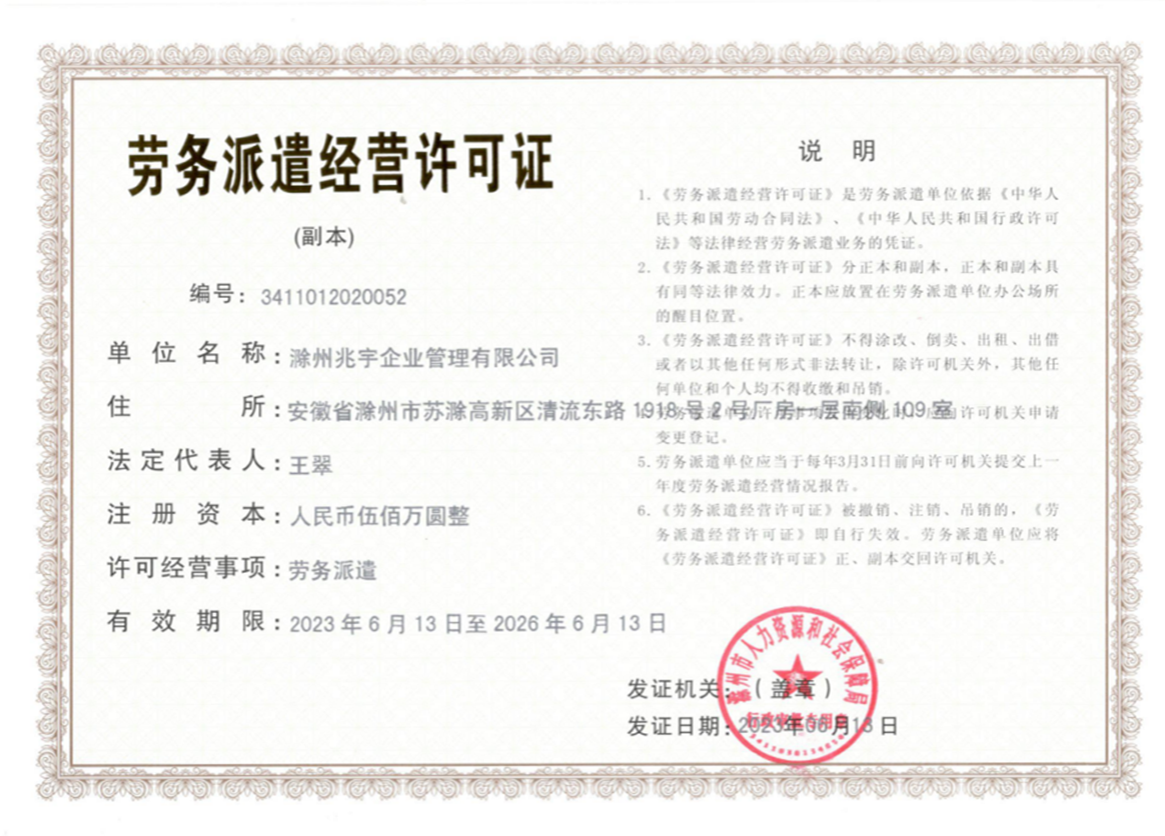 劳务派遣经营许可证